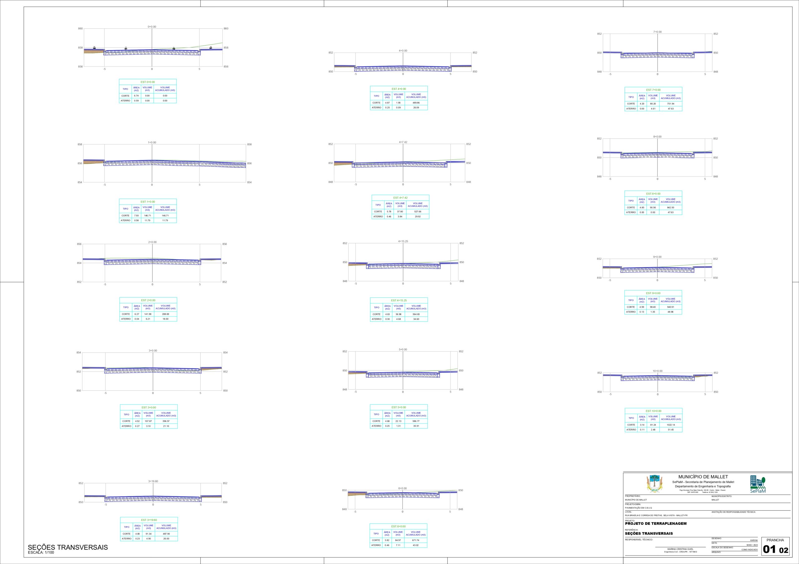 Desenvolvimento projetos de pavimentação asfáltica, pedra poliédrica e lajota sextavada. Contemplando memorial descritivo, orçamento com base na planilha SINAPI disponibilizada pela CAIXA, além dos projetos geométricos, terraplenagem, drenagem pluvial, sinalização, paisagismo e urbanismo, localização, e outros. Além do acompanhamento, fiscalização e medição das obras em execução.